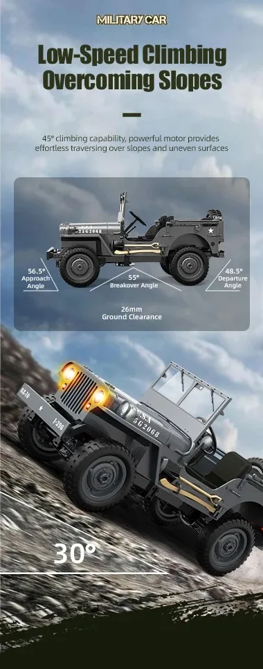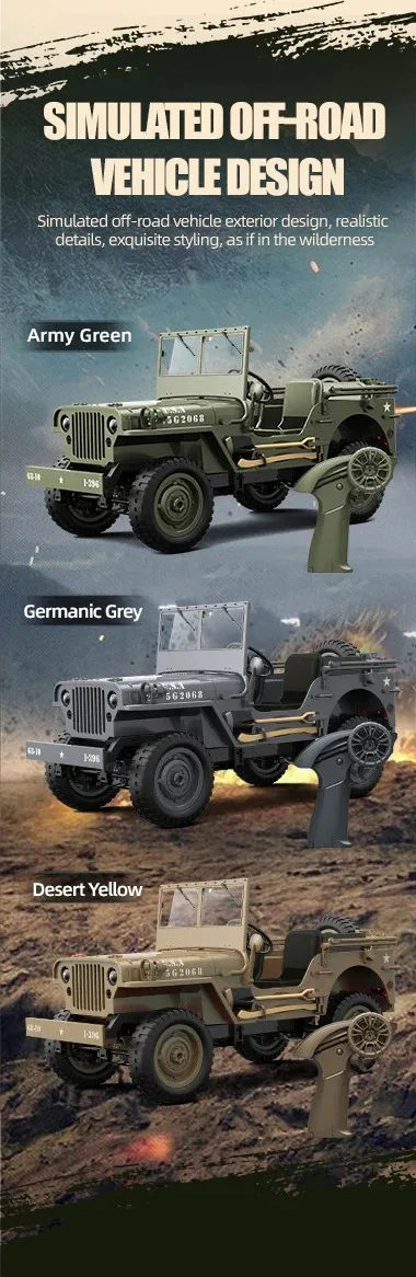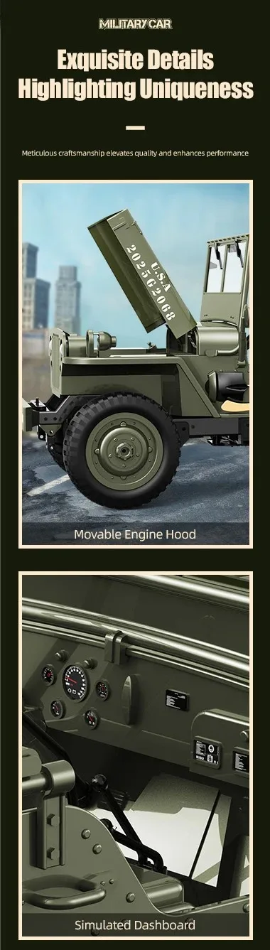 1/10 WILLYS JEEP 2.4G Rc Car 1941 4WD RTR Crawler Climbing Scale Military