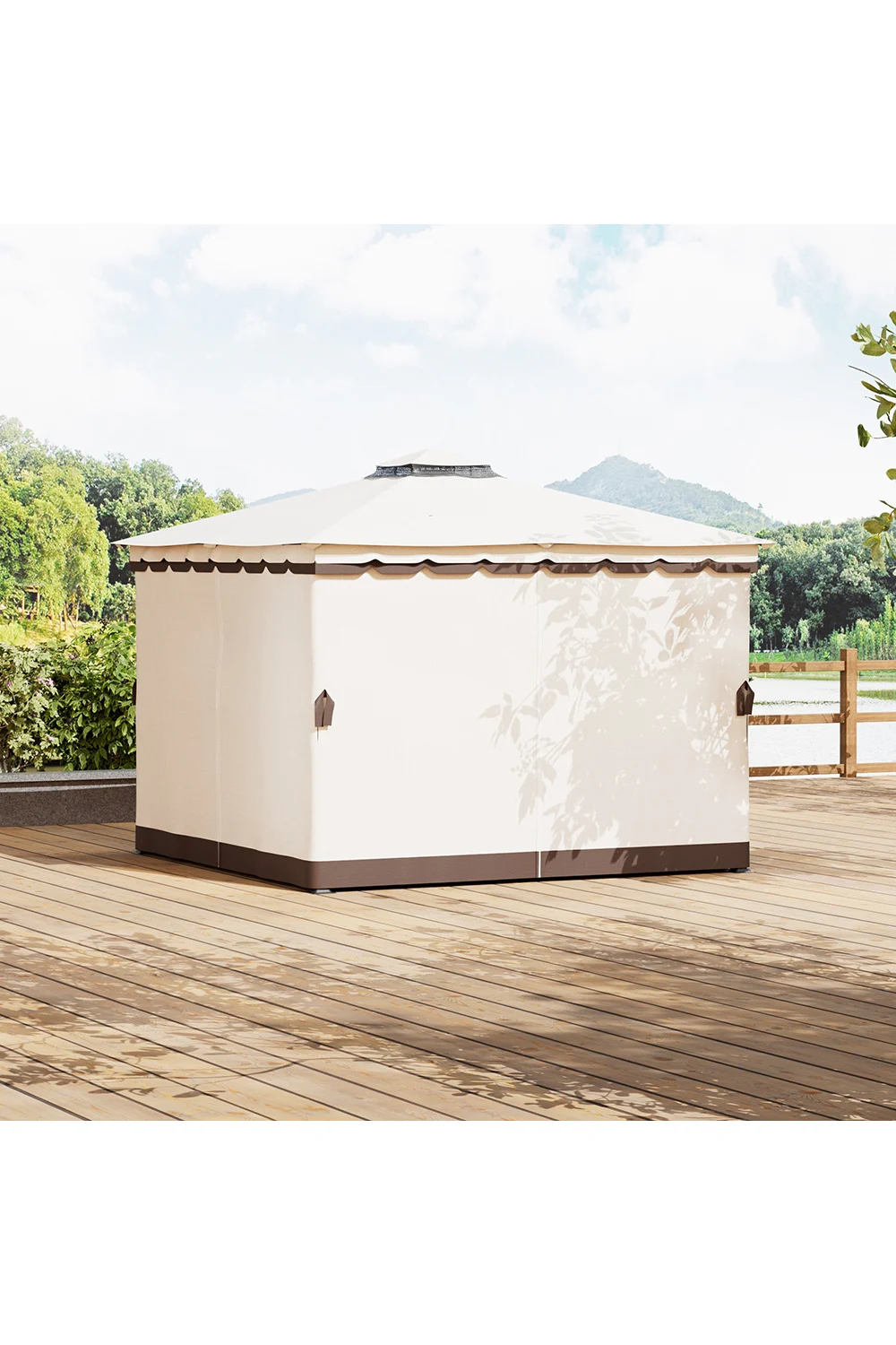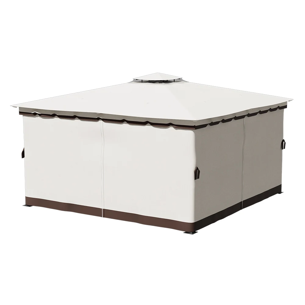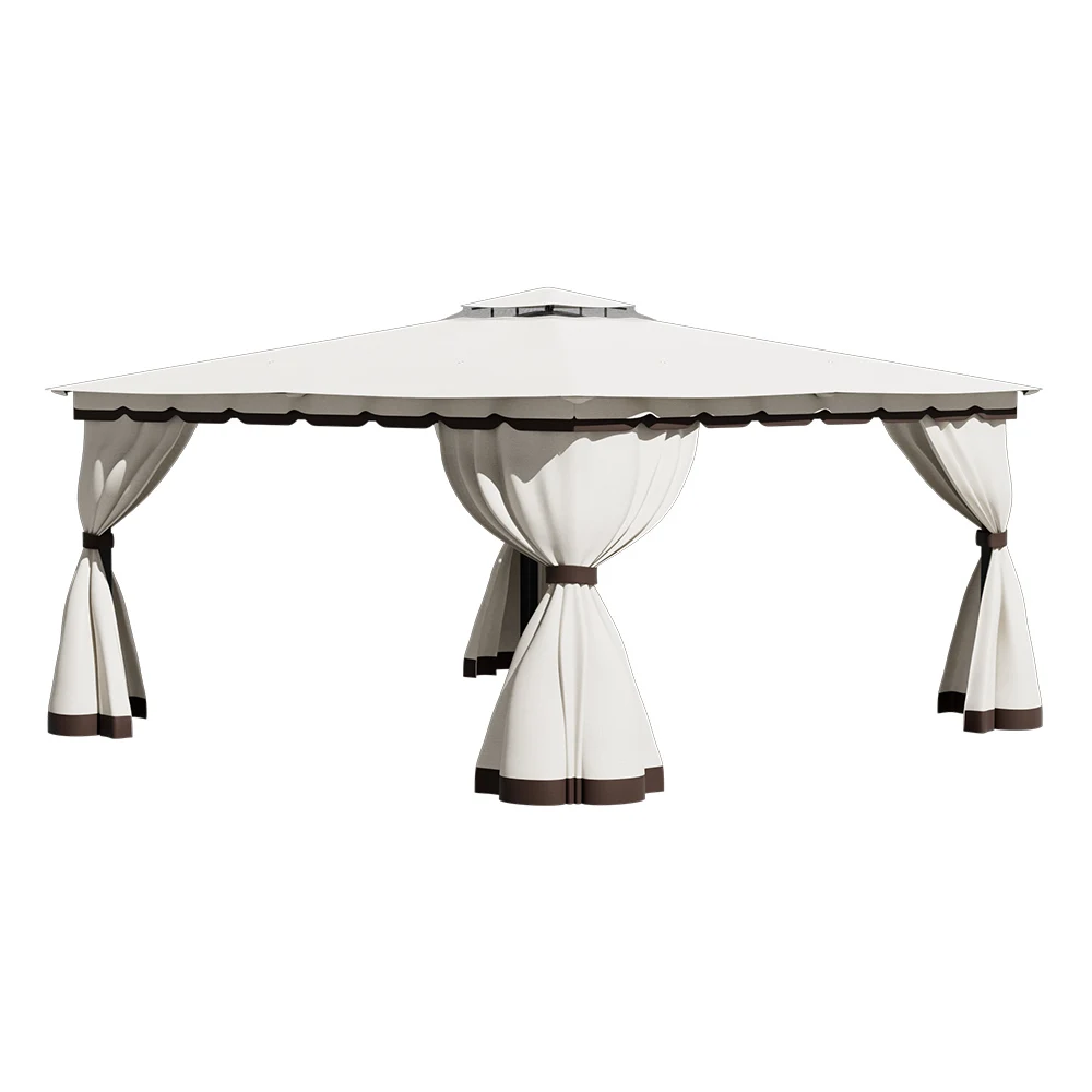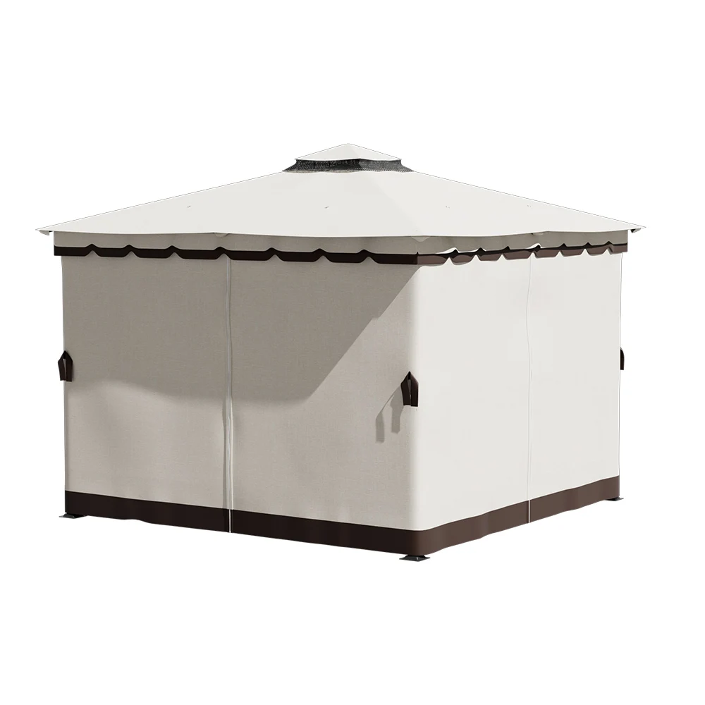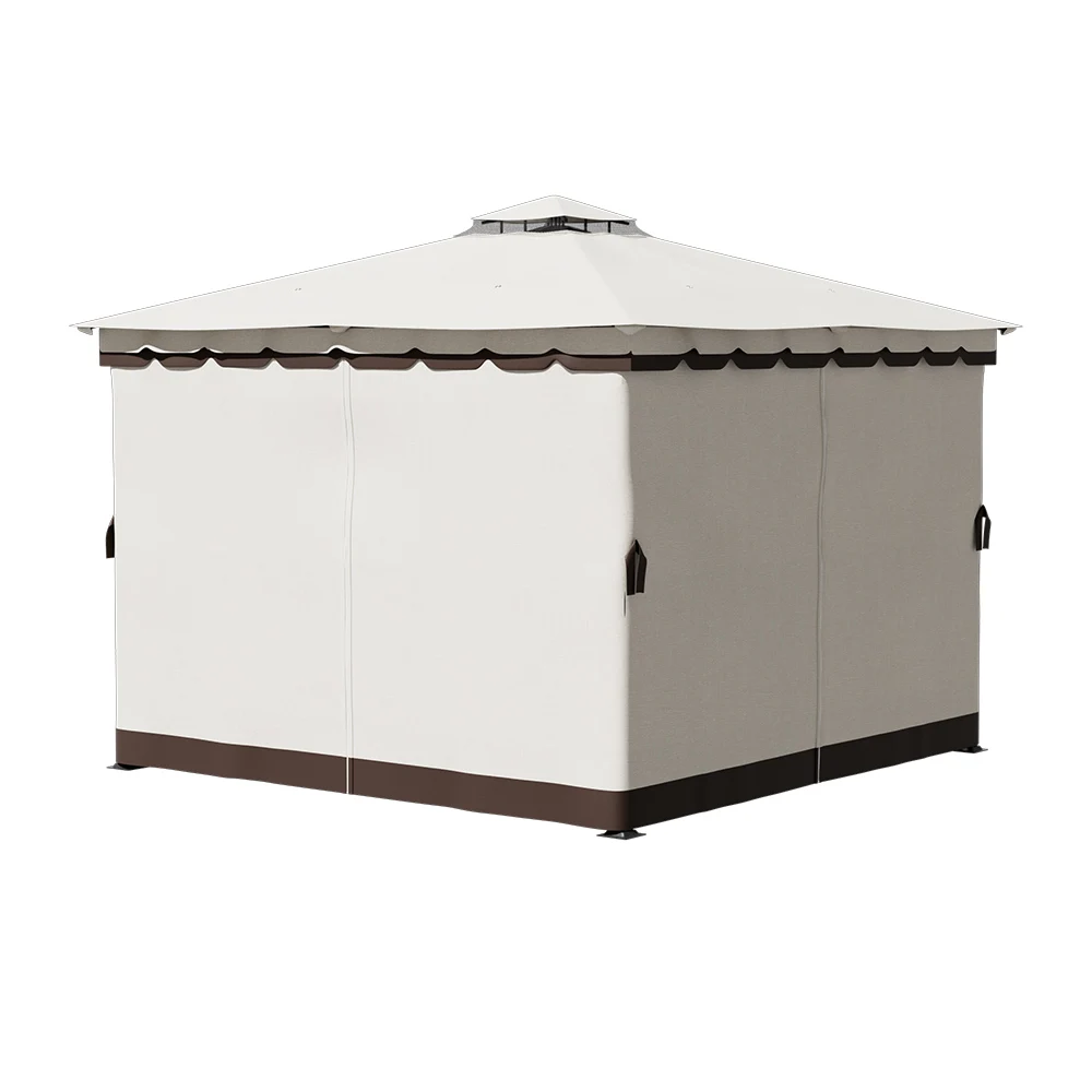 Infuse a year-round retreat for relaxation into your garden with this patio gazebo. Designed to offer both functionality and visual appeal, it features a ventilated polyester canopy with PU coating for reliable protection against sun and light rain. Its hipped roof design efficiently channels rainwater away, eliminating pooling while ensuring durability in all seasons. Clever tiered architecture enhances ventilation, maintaining a refreshingly cool atmosphere even when curtains are fully drawn. Spacious and inviting, the open layout comfortably hosts gatherings while promoting excellent air circulation. Adaptable side curtains—adjustable manually for precise shade or breeze control—create instant privacy and sun protection. Every detail merges sophistication with resilience, transforming your garden into a sanctuary of style and comfort.