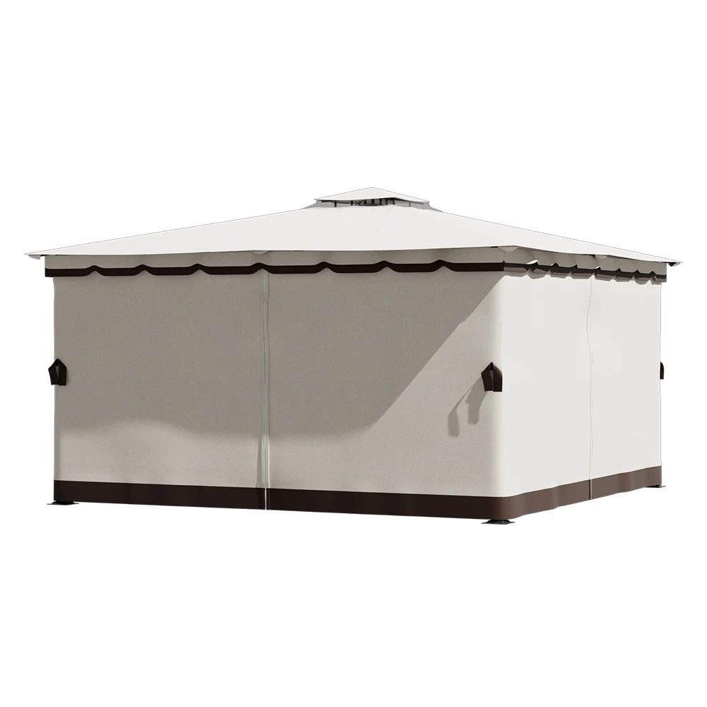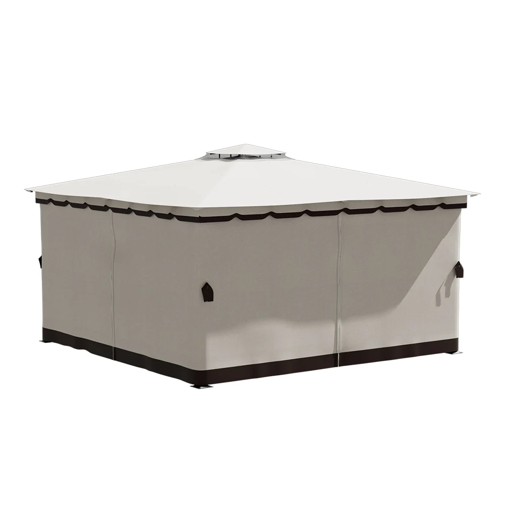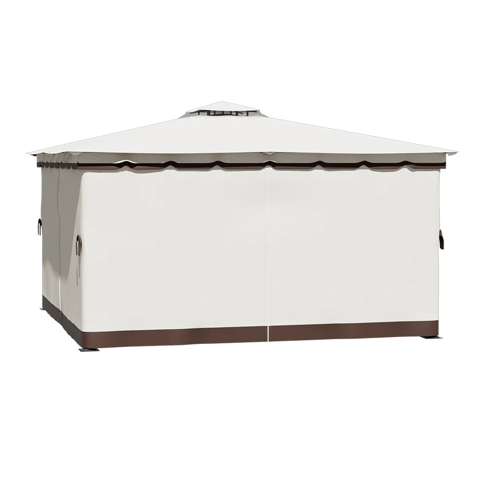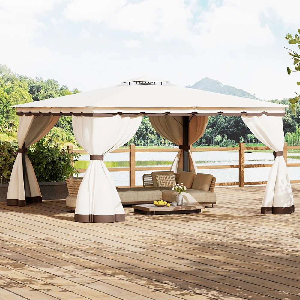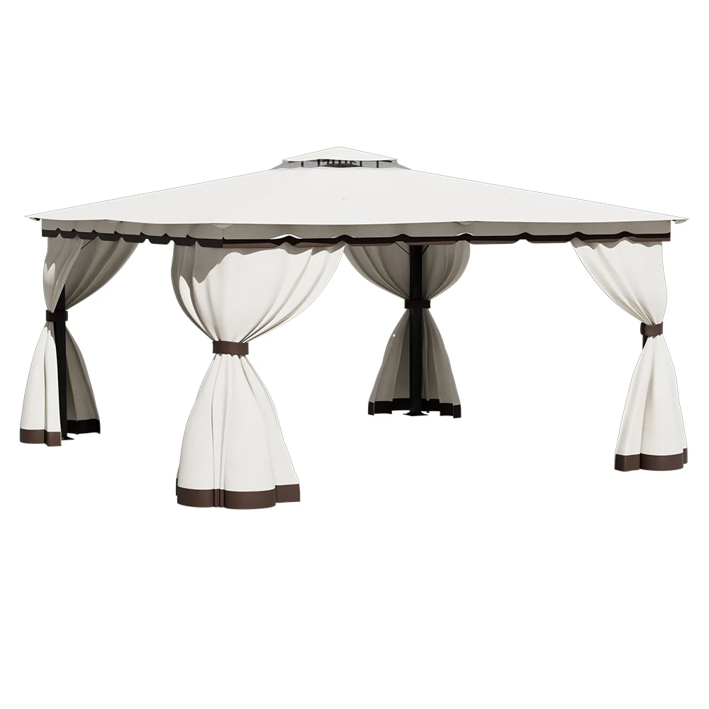 Infuse a year-round retreat for relaxation into your garden with this patio gazebo. Designed to offer both functionality and visual appeal, it features a ventilated polyester canopy with PU coating for reliable protection against sun and light rain. Its hipped roof design efficiently channels rainwater away, eliminating pooling while ensuring durability in all seasons. Clever tiered architecture enhances ventilation, maintaining a refreshingly cool atmosphere even when curtains are fully drawn. Spacious and inviting, the open layout comfortably hosts gatherings while promoting excellent air circulation. Adaptable side curtains—adjustable manually for precise shade or breeze control—create instant privacy and sun protection. Every detail merges sophistication with resilience, transforming your garden into a sanctuary of style and comfort.