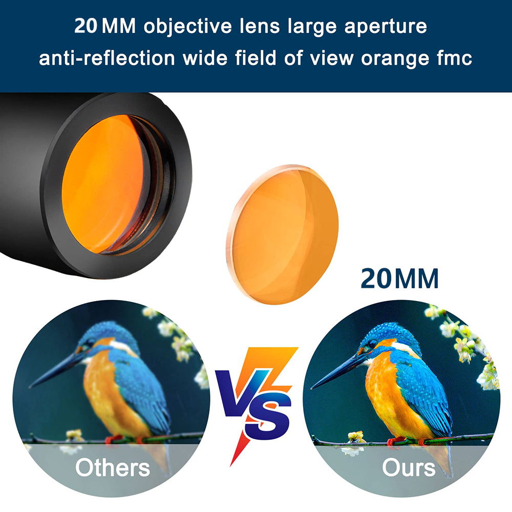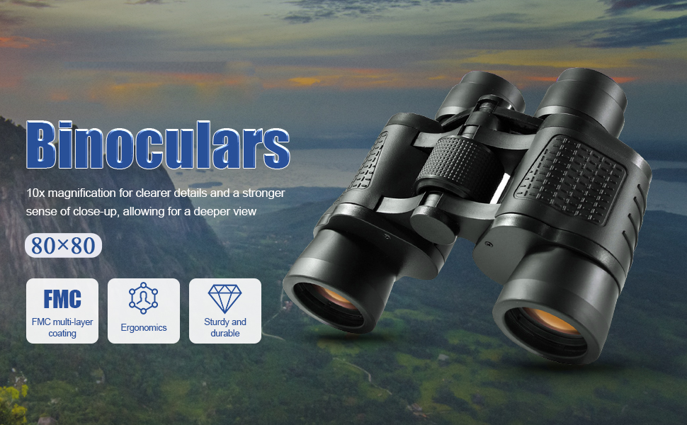 Compact 80x80 Binoculars: Enable you see a clear face from over 3000M/9840Ft/3280yds away. It's designed with 10X high power magnification, 18mm objective lens.