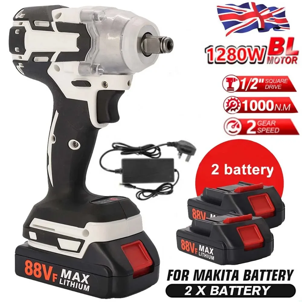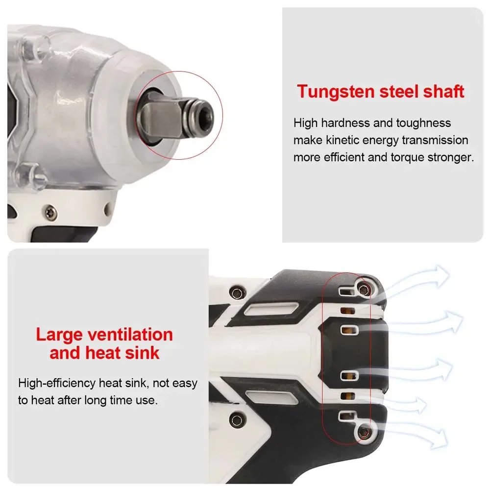 1000Nm 1/2" Cordless Electric Impact Wrench Drill Gun Ratchet Driver w/ Battery