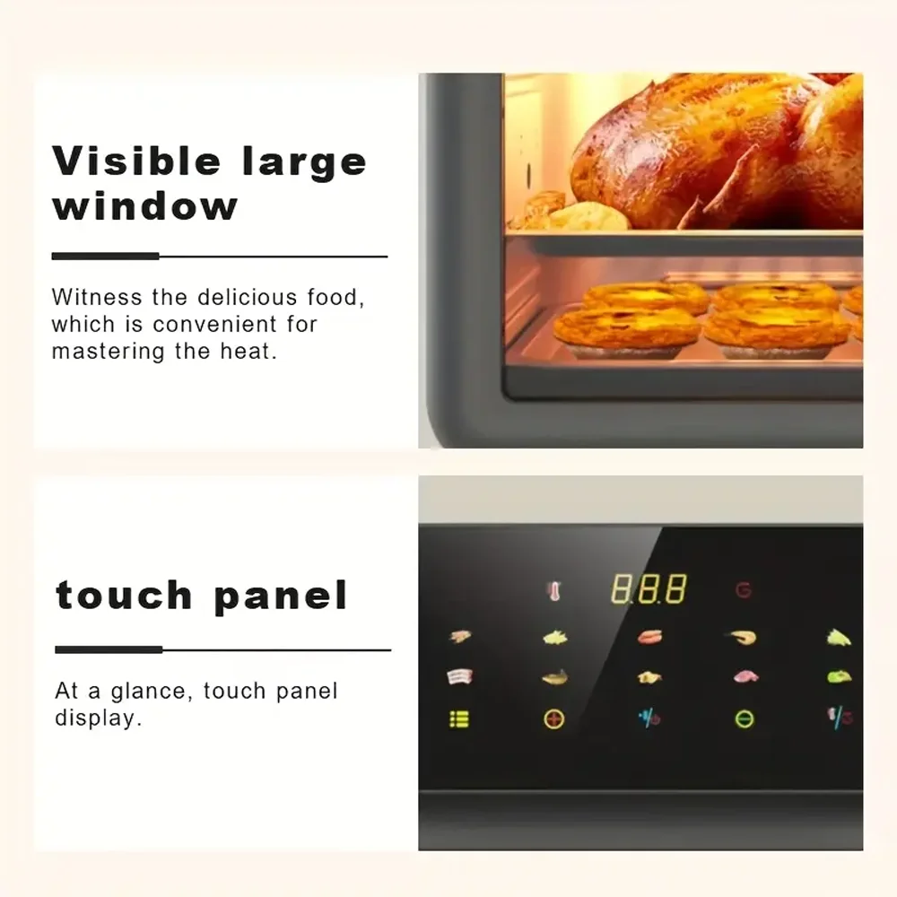 A large transparent window lets you watch your food cook and crisp up close. The smart touchscreen allows for easy operation.